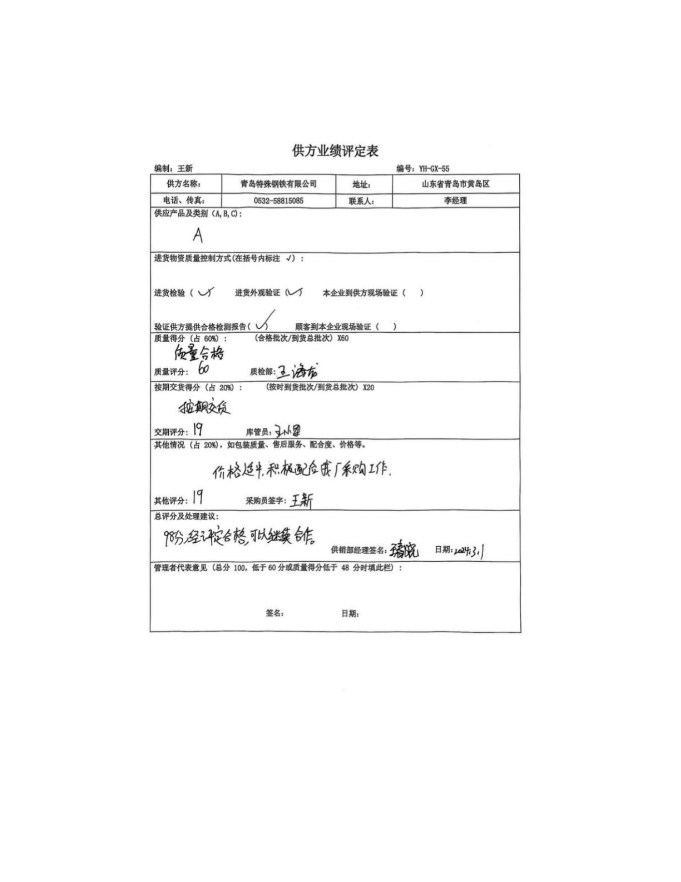 供方評(píng)價(jià)記錄