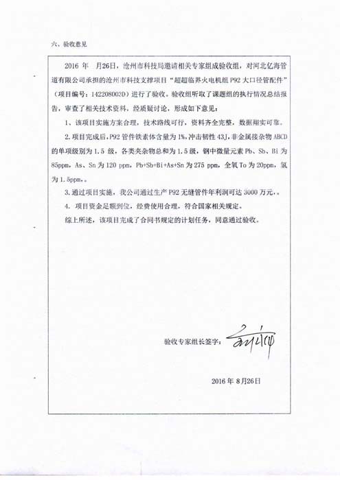 我公司自主研發(fā)的火力電站超超臨界P92大口徑管配件通過省專家組驗收